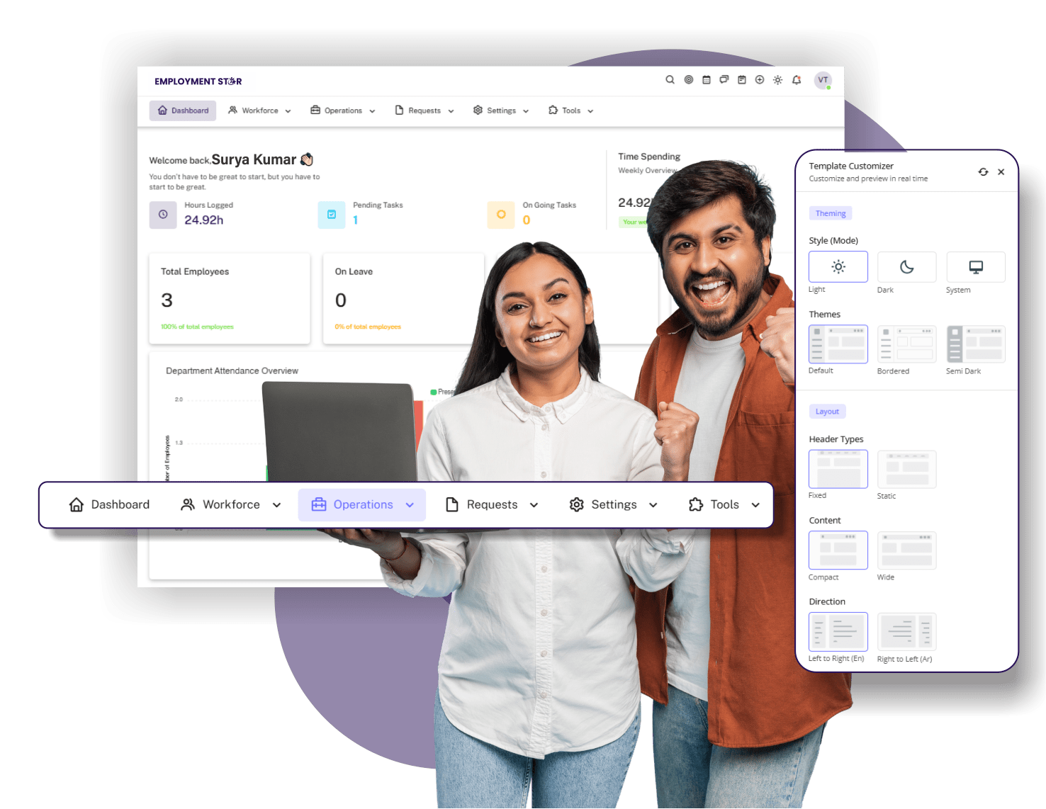 Employment Star HRMS brings together everything you need to manage your workforce effectively. From payroll and attendance to recruitment and performance, our platform is designed to simplify HR operations, improve productivity, and deliver real results.