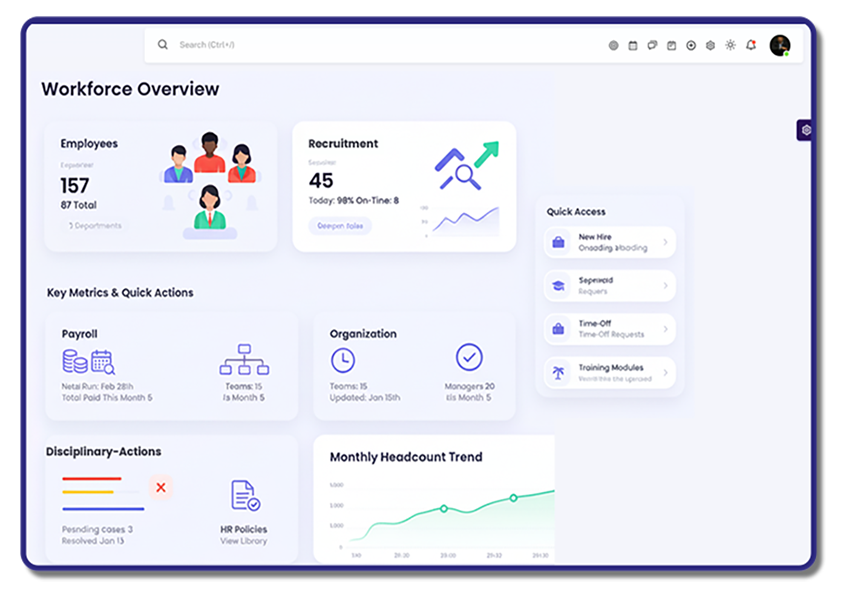 Our HRMS software automates payroll, attendance, recruitment, and performance—saving time and eliminating manual tasks. With smart insights and smooth integration, build stronger teams and step confidently into the future of work.